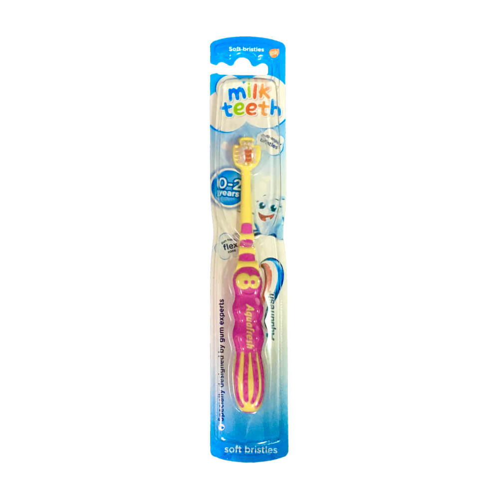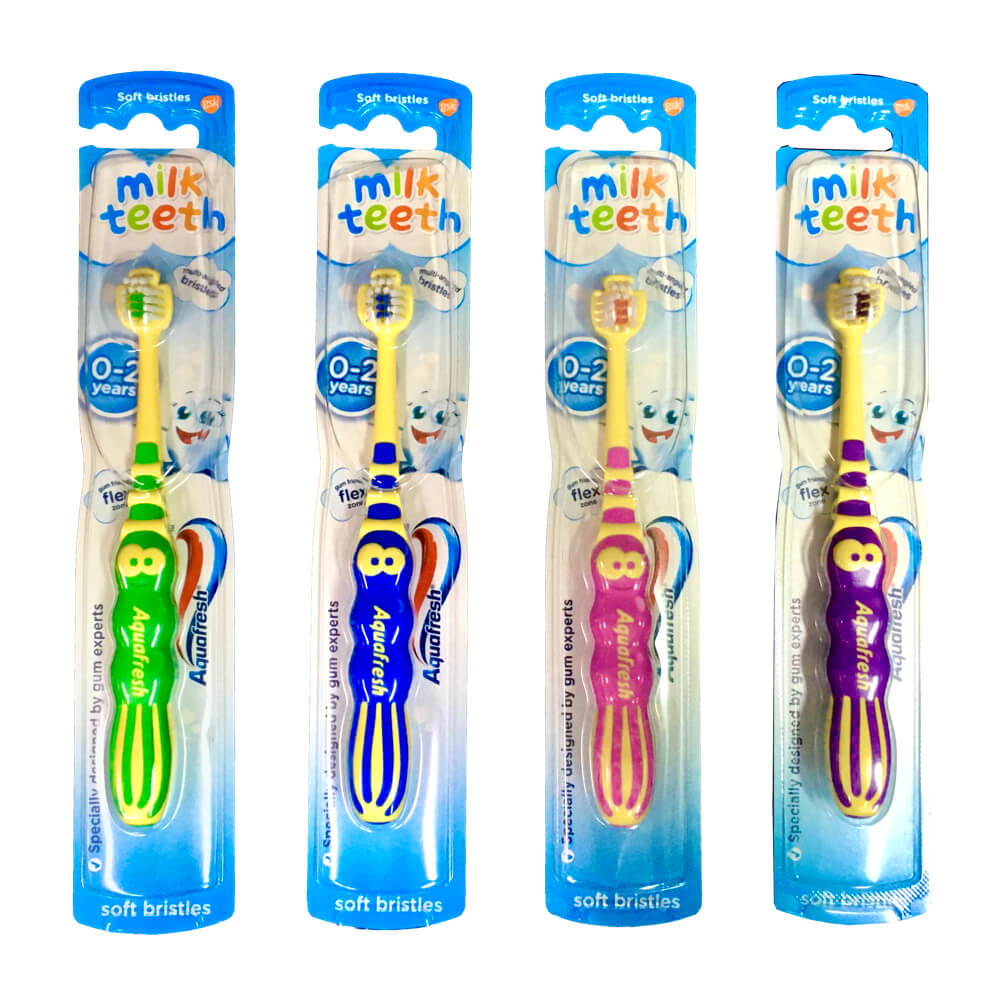 • Η Aquafresh Milk Teeth Toothbrush είναι η ιδανική πρώτη οδοντόβουρτσα για βρέφη 0-2 ετών, φτιαγμένη με στόχο τη φροντίδα των πρώτων δοντιών και των ευαίσθητων ούλων τους.