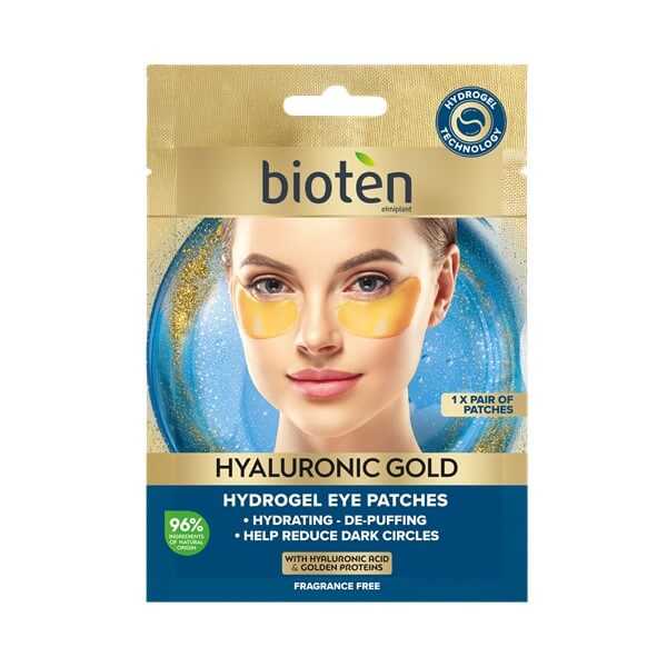 Τα Bioten Hyaluronic Gold Eye Patches, με 96% συστατικά φυσικής προέλευσης, είναι εμπλουτισμένα με Υαλουρονικό οξύ και Χρυσές Πρωτεΐνες που βοηθούν την περιοχή κάτω από τα μάτια να φαίνεται πιο φωτεινή και αναζωογονημένη. Οι Βιταμίνες και τα Κεραμίδια βοηθούν στο να διατηρείται το δέρμα σας με υγιή και νεανική όψη.